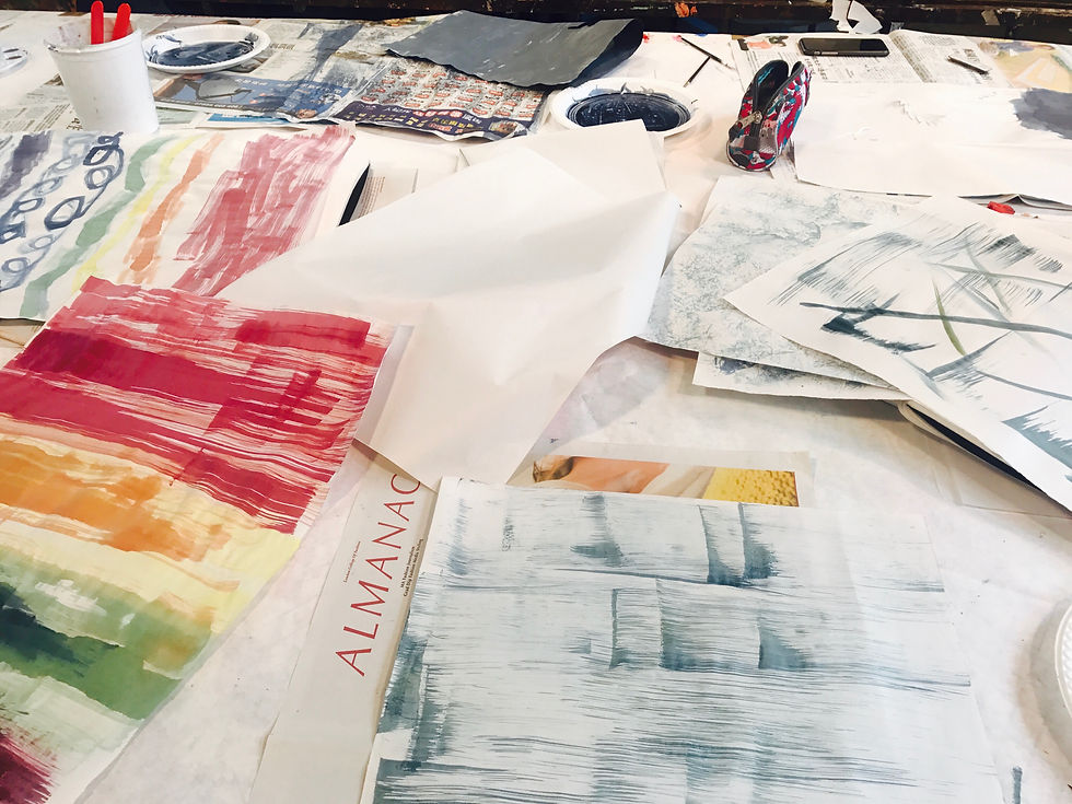 I started off with drawing multiple design ideas and sketches in my sketchbook. Afterwards I started eliminating my ideas and asking around what design sketch suits the theme and my target audience. After getting feedback from my peers and teachers, I tested different colors and prints that go with my chosen idea. Subsequently, I used the heating machine to print my prints on the shirt and added a mesh fabric on top of it. I also used sewing techniques to stich the shirt with other fabrics.